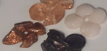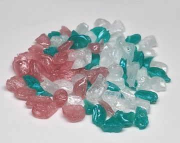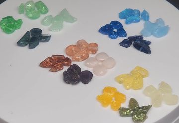 Beautiful, glistening semi-opaque chips with sparkle. Some of the colors are very similar. I HIGHLY recommend contacting me for a color sample if you're having a problem choosing between some of them.
